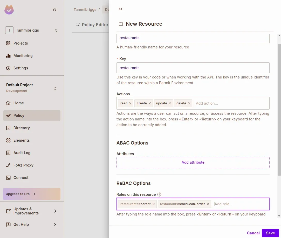Before running the server, we need to define the access control structure in the Permit.io dashboard. This includes: